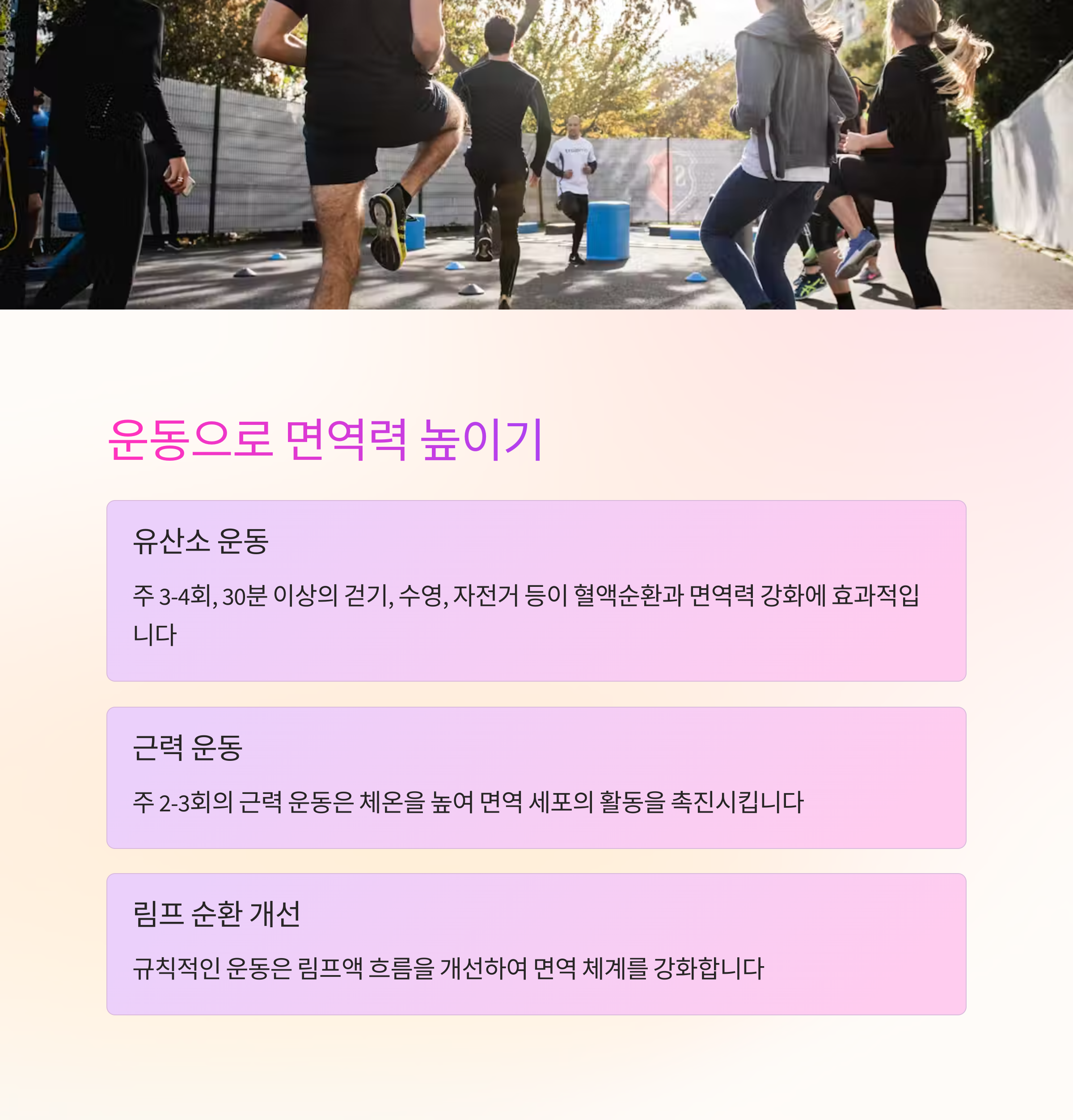 운동은 면역력을 올리는 가장 확실한 방법 중 하나예요.