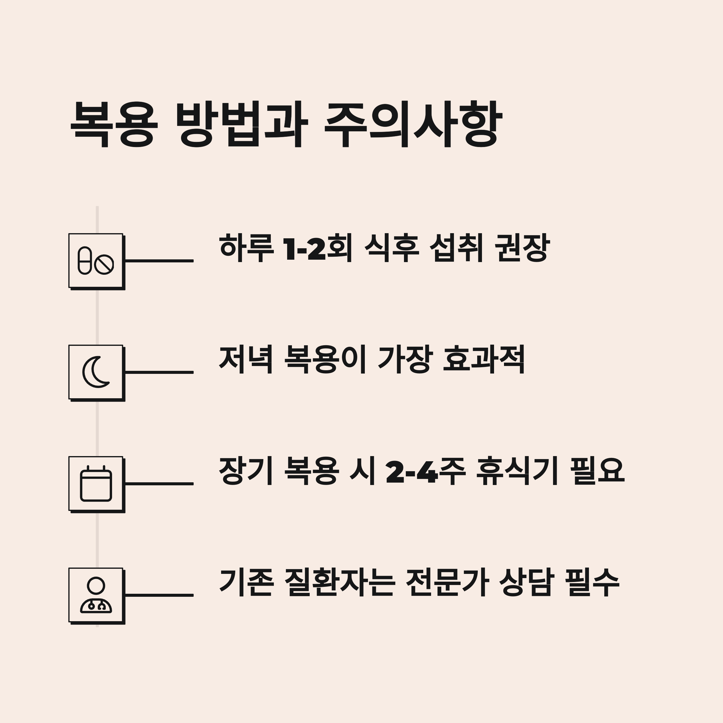 - 장기 복용 시 3개월 단위로 휴식기 두기