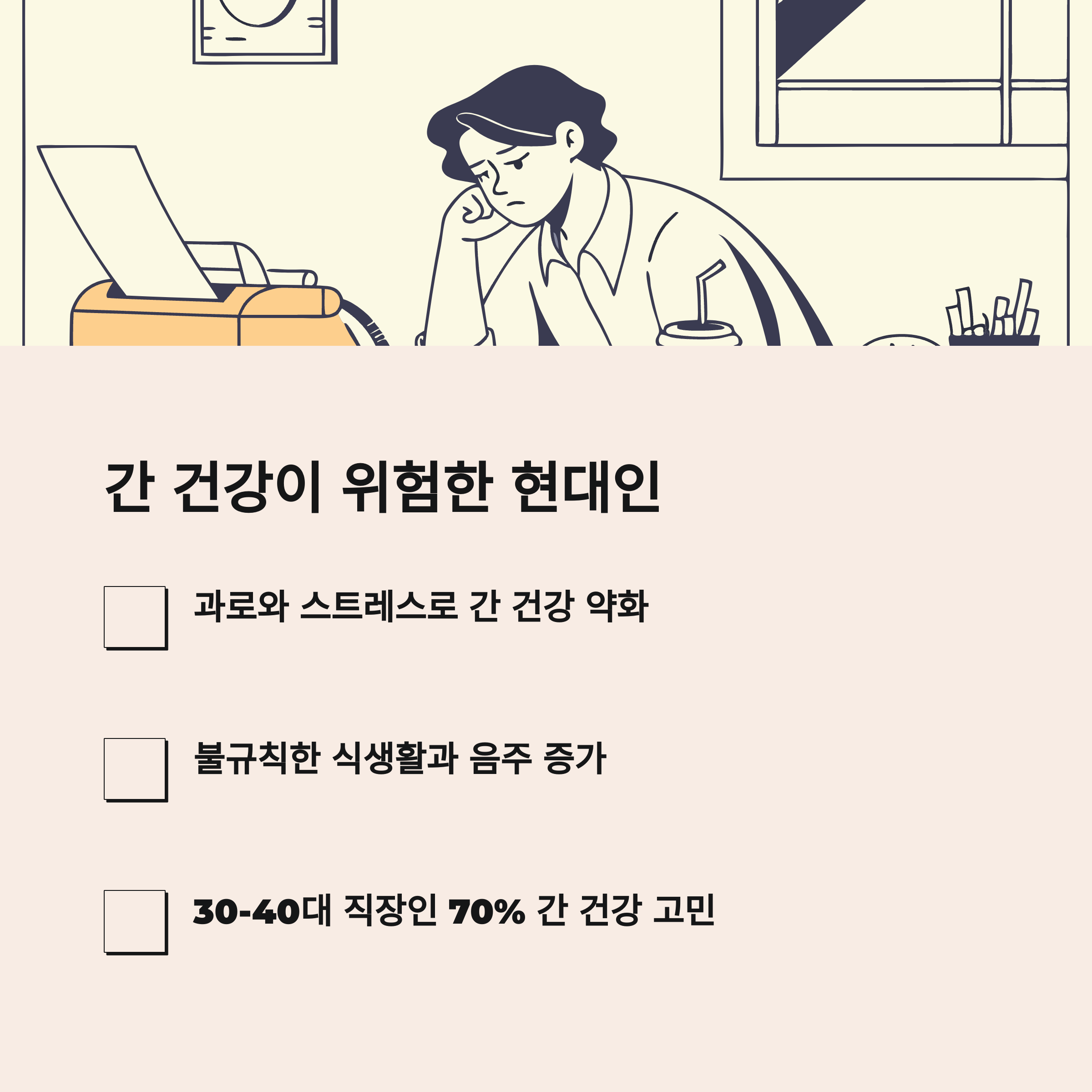 과도한 음주, 피로감, 간 수치 이상, 만성 스트레스 등 간에 부담이 큰 생활을 하고 있다면 추천돼요.