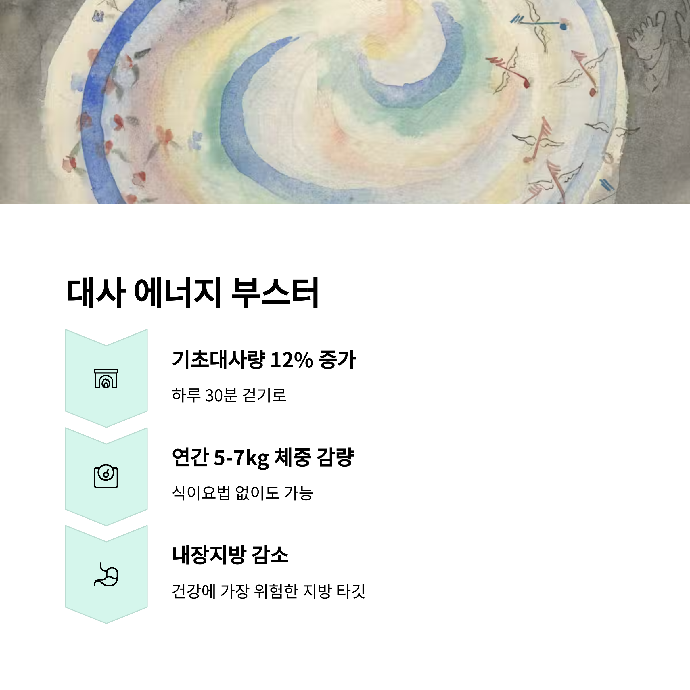걷기는 칼로리를 소모할 뿐 아니라 기초대사량을 높이는 데도 도움이 됩니다.