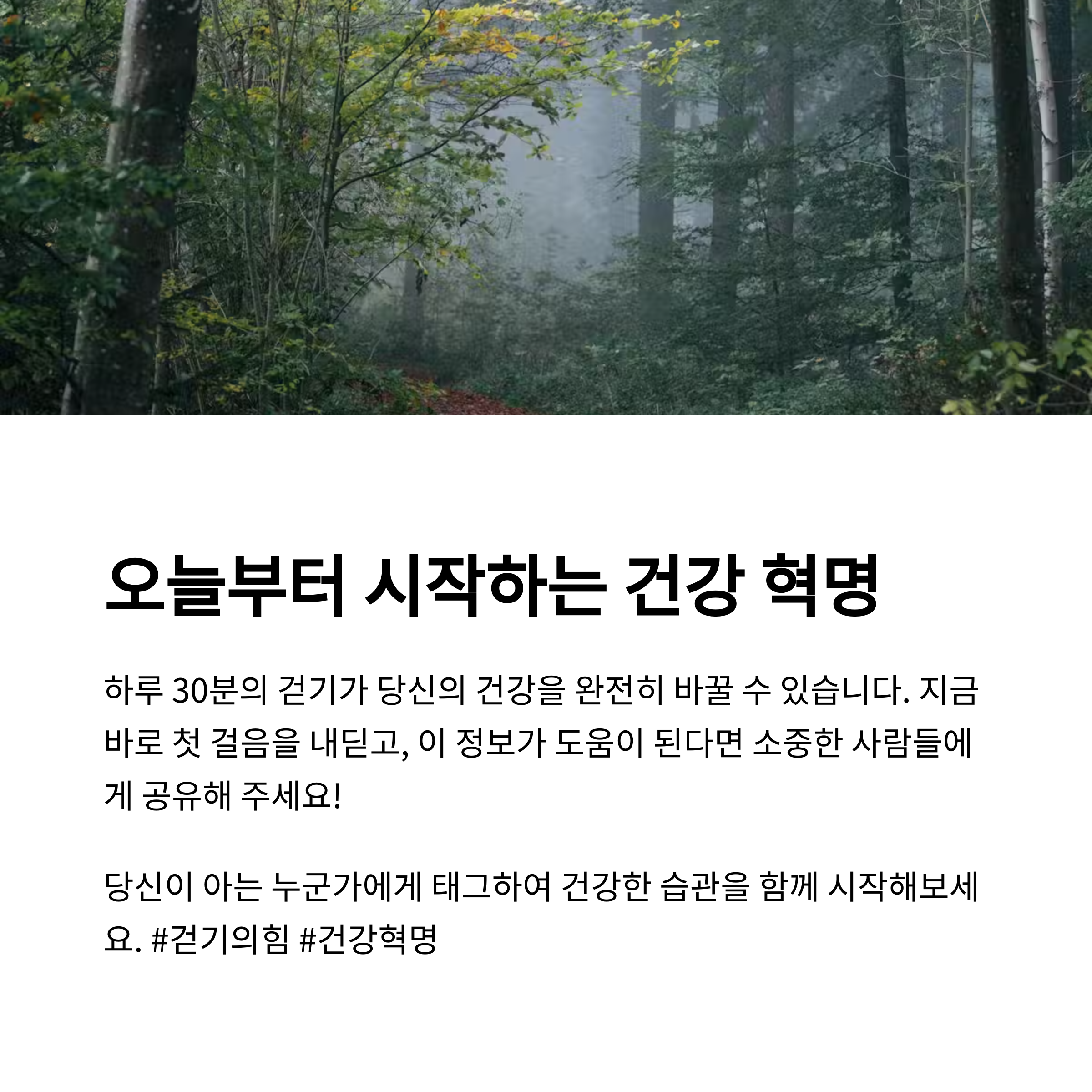 여러분, 걷기라는 게 정말 별거 아닌 것 같지만, 해보면 삶 전체가 바뀝니다.
