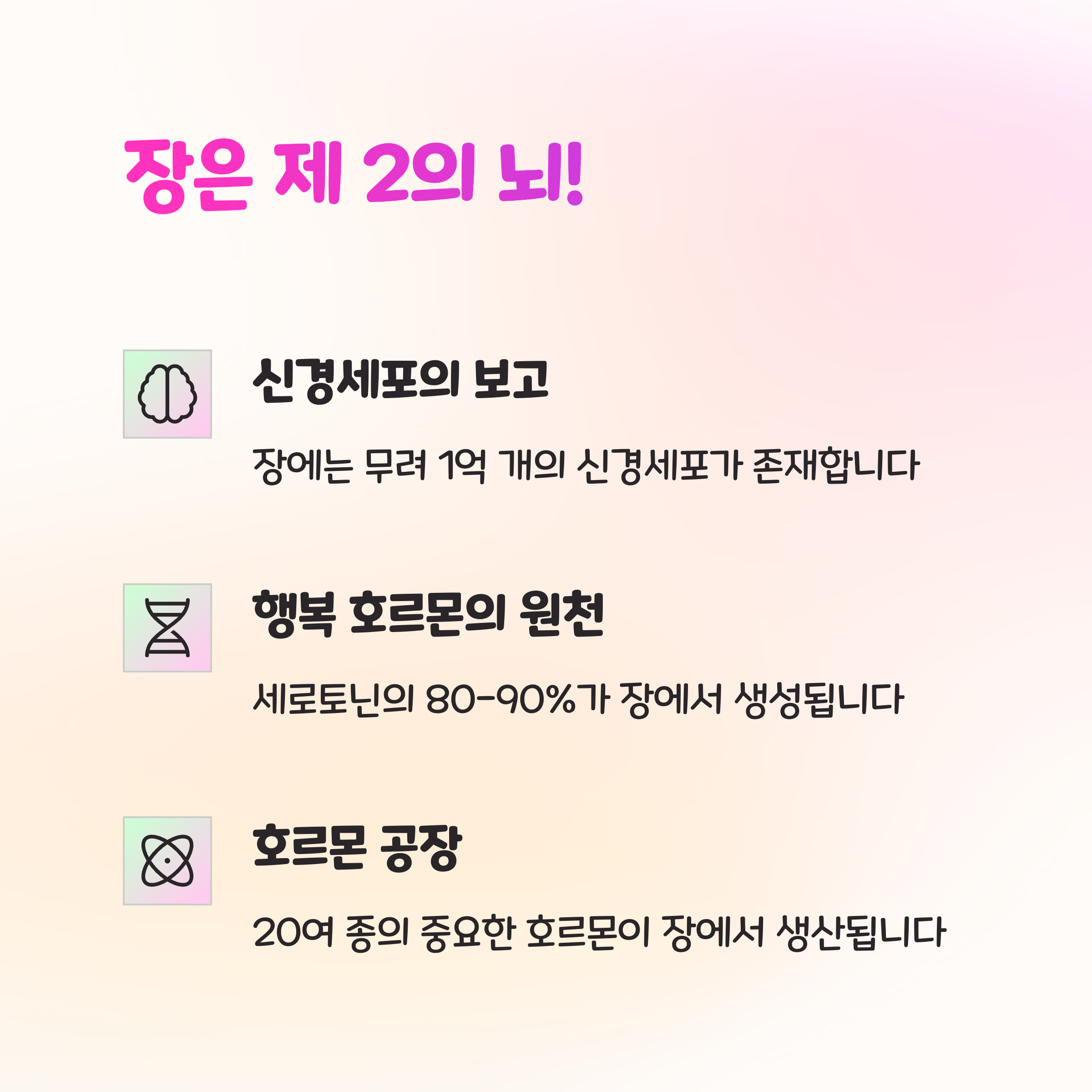 결국, 장 건강을 챙기는 건 몸과 마음을 동시에 챙기는 일인 셈이죠.